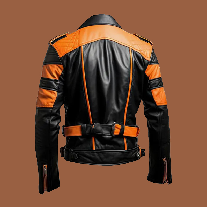 Men’s Stylish Orange Black Biker Leather Jacket