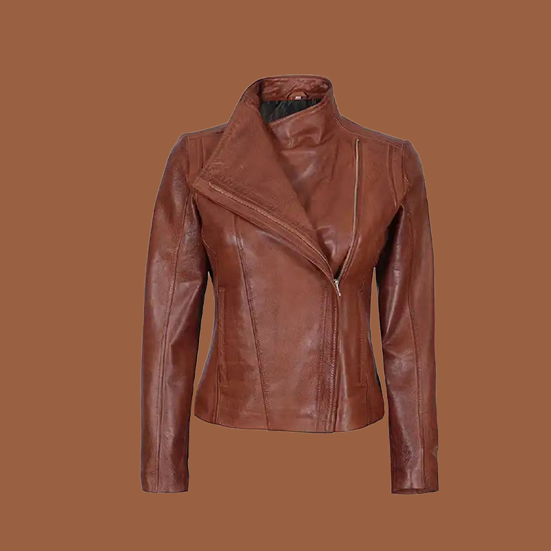 Women’s Asymmetrical Tan Biker Leather Jacket