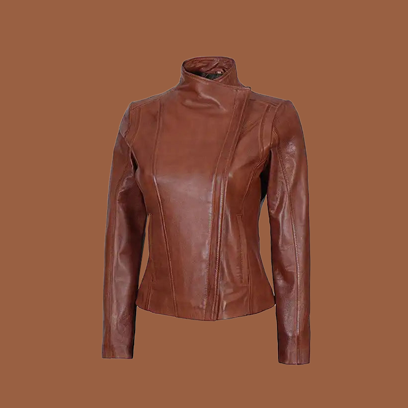Women’s Cognac Wax Café Racer Leather Jacket – A sleek racer-cut jacket in a smooth cognac waxed finish, for a clean and timeless look.