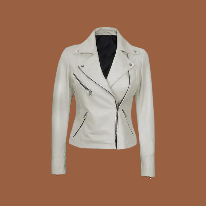 Whether you’re gearing up for a night out or layering into your everyday rotation, the Women’s Moto Style White Leather Jacket delivers. Pair it with black skinny jeans and boots for contrast and edge, or don a slip dress underneath for modern juxtaposition.