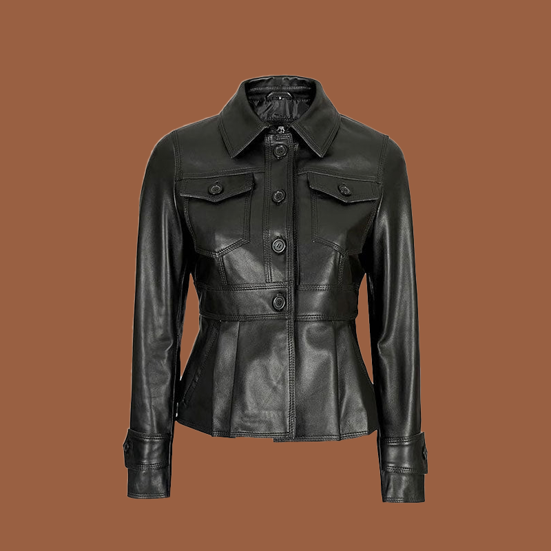 This jacket easily transitions between casual and polished looks. Pair it with jeans and boots for a street-smart, biker‑inspired style, or layer it over a dress or tailored trousers for a bold, fashion‑forward statement. The timeless black leather makes it a versatile staple in any wardrobe.