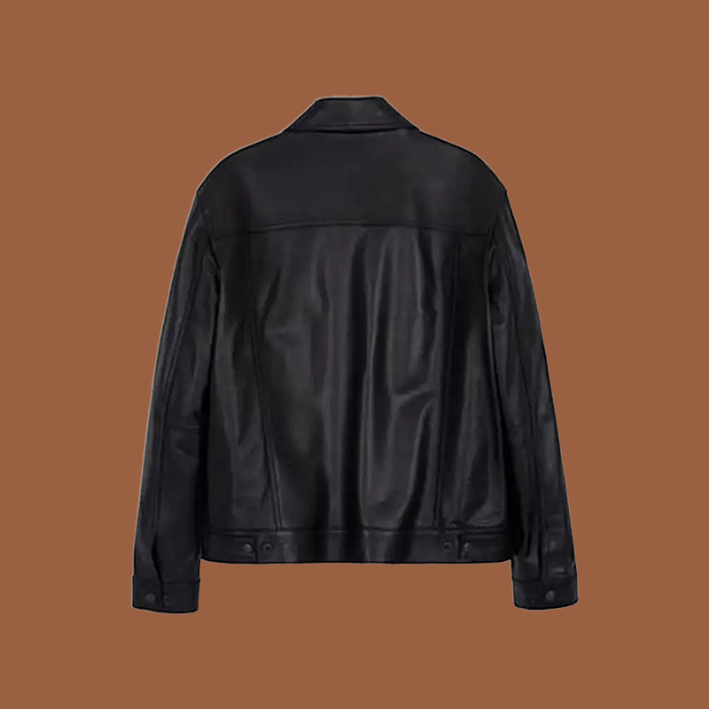 Made from premium genuine leather, this jacket features a clean exterior, sturdy side‑zipper closure, reinforced stitching, and quality metal hardware for long‑lasting wear. The structured paneling and precise seams give it a sharp silhouette that holds up over time.