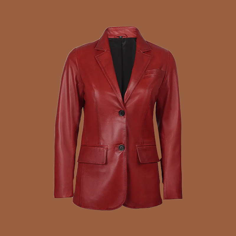 Women’s Two‑Button Red Leather Blazer Jacket