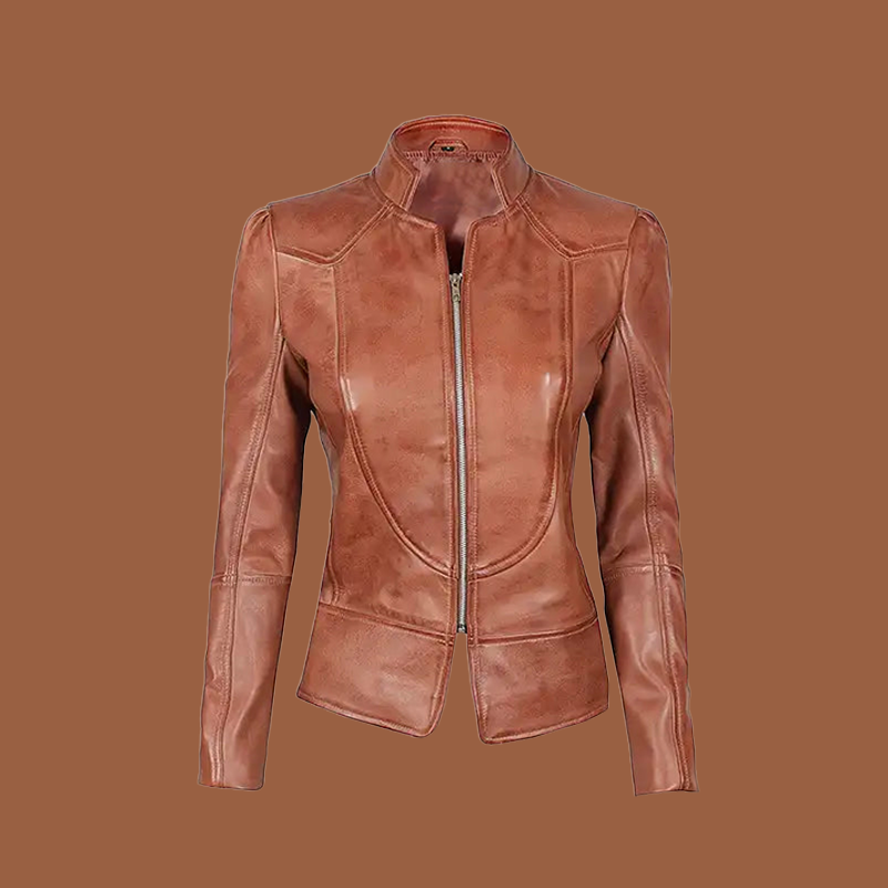 Women’s Brown Leather Biker Jacket – A bold biker-style jacket in deep brown leather for that powerful, rugged look.