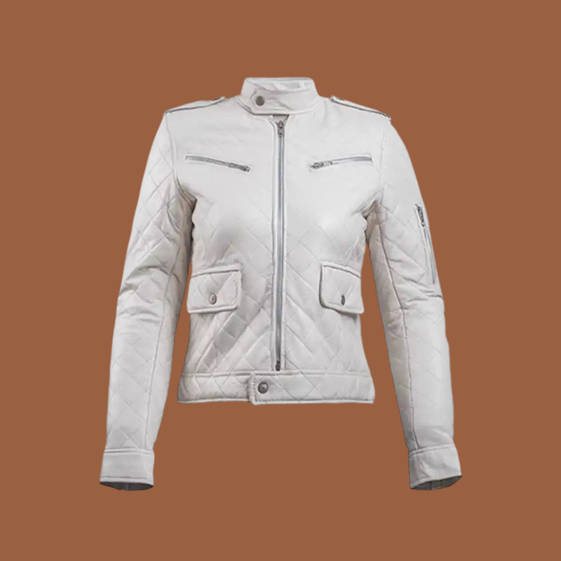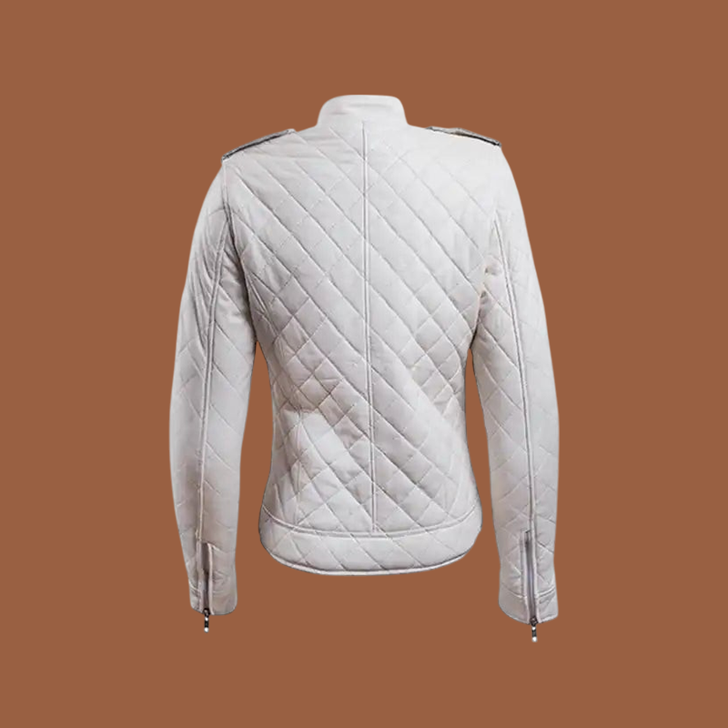 Crafted from genuine white leather, this jacket features quilted or padded panels for insulation, a smooth zip-front closure, rib-knit or leather cuffs and a high collar to lock in warmth. High-quality hardware and refined stitching guarantee lasting wear.